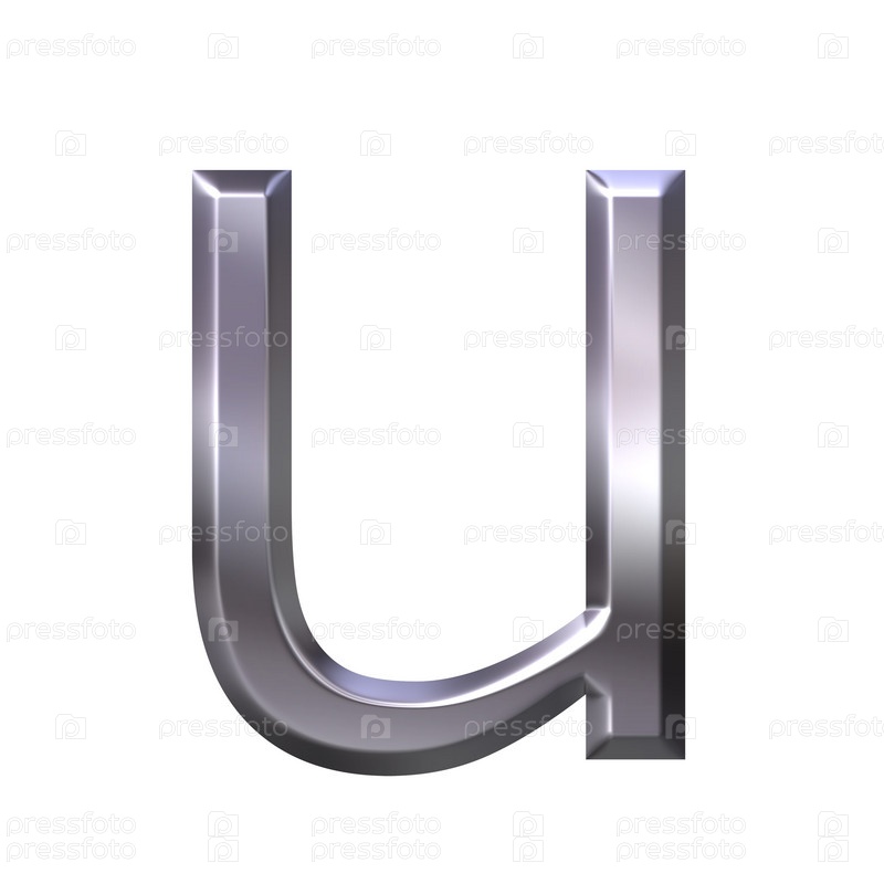 3D серебряная буква u на белом фоне