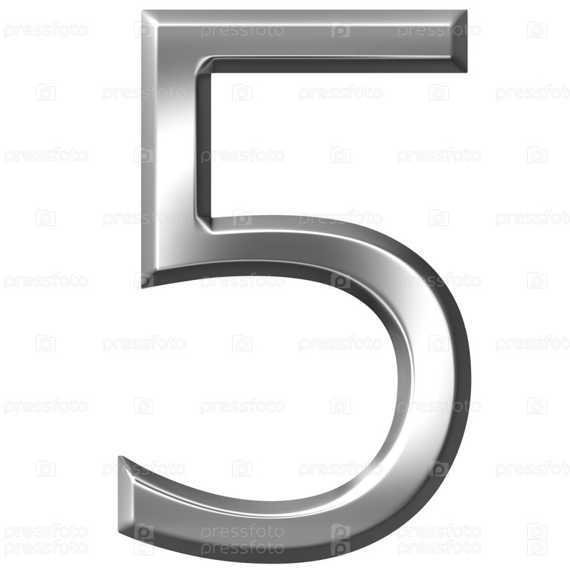 3D серебряное число 5 на белом фоне