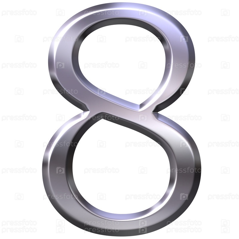 3D серебряное число 8 на белом фоне