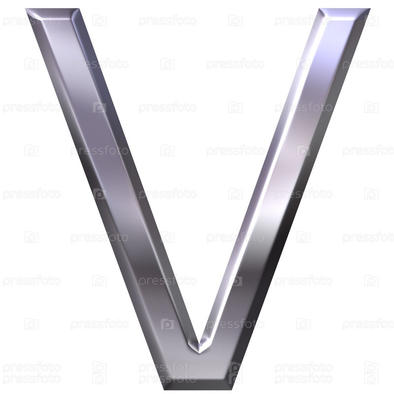 3D серебряная буква V на белом фоне
