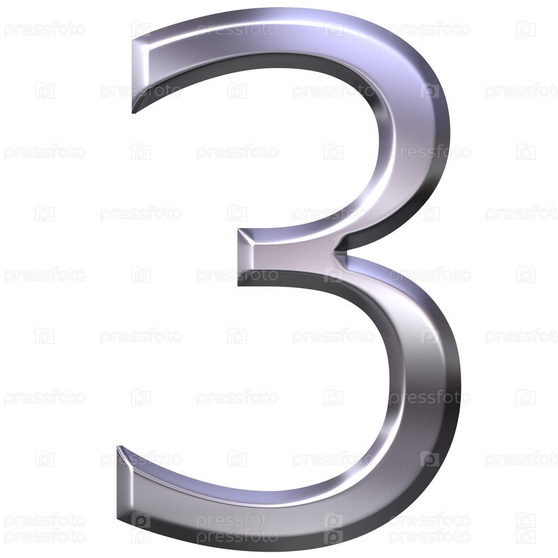 3D серебряное число 3 на белом фоне