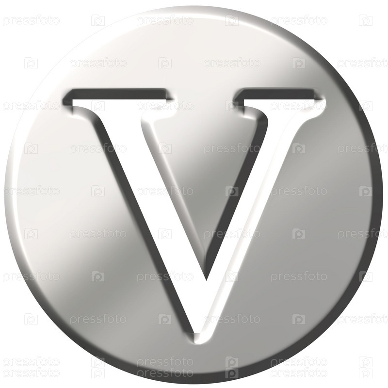 3D серебряная буква V на белом фоне