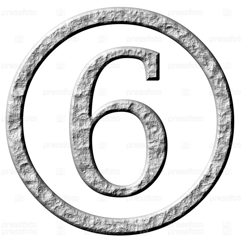 3D каменное число 6 на белом фоне