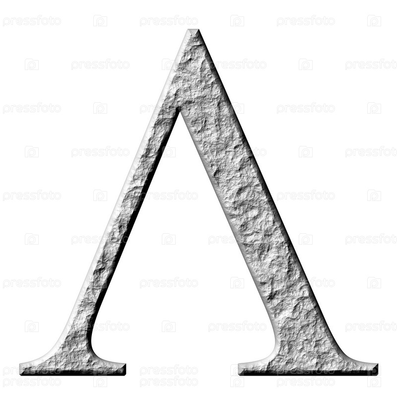 3D каменная греческая буква лямбда на белом фоне