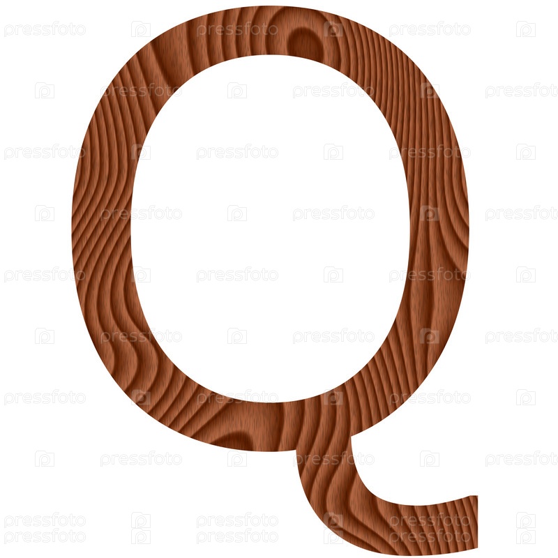 Деревянная буква Q на белом фоне