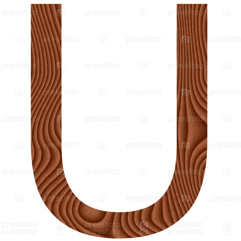 Деревянная буква U на белом фоне