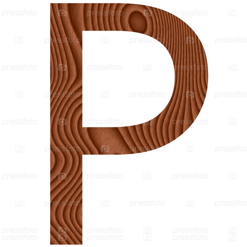 Деревянная буква P на белом фоне