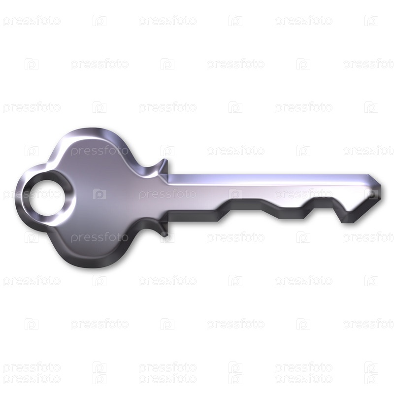 3D серебряный ключ на белом фоне
