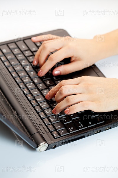 Женские руки печатают на ноутбуке