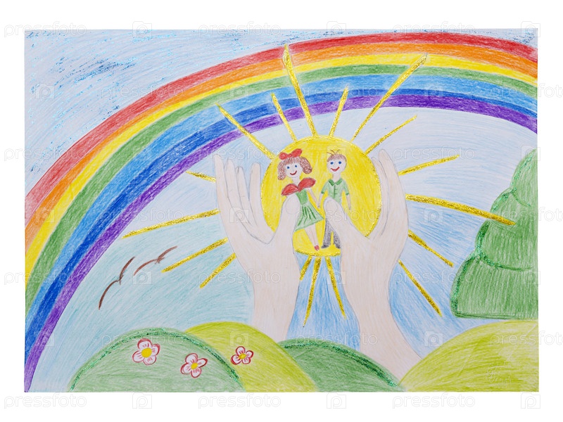 Разноцветный карандашный детский рисунок