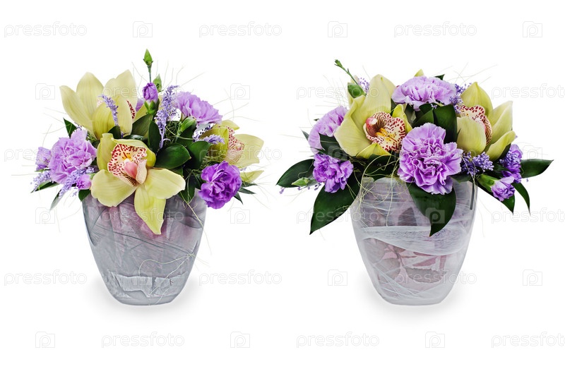Красочный цветочный букет из роз, гвоздик и орхидей, изолированный на белом фоне