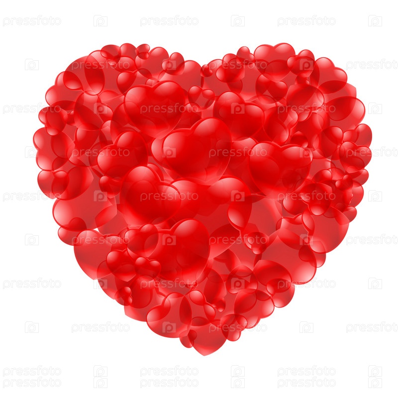Форма сердца из маленьких сердечек. Иллюстрация на белом