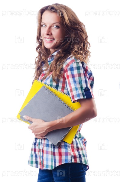 Молодая студентка, изолированная на белом