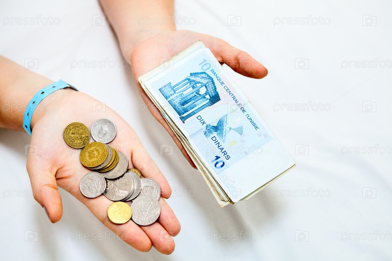 Тунисские динары в женских руках