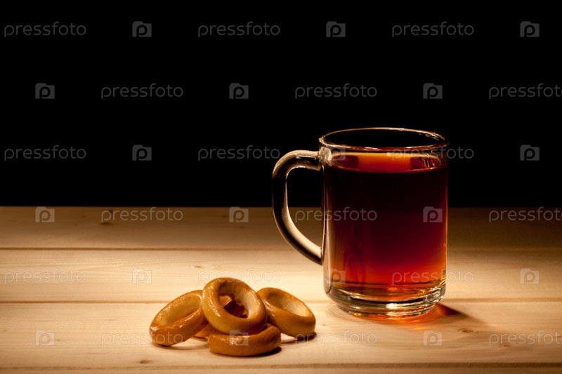 Чашкой чая и бублики на столе