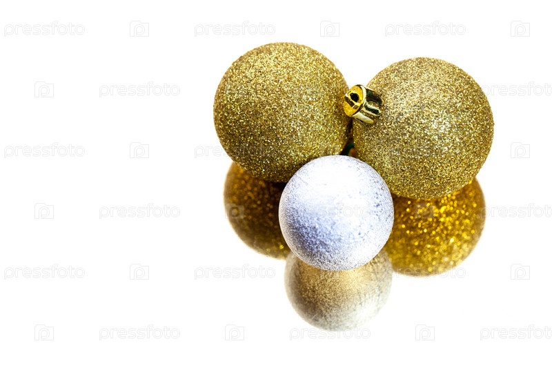 Два золотых и один серебряный шар на изолированном фоне