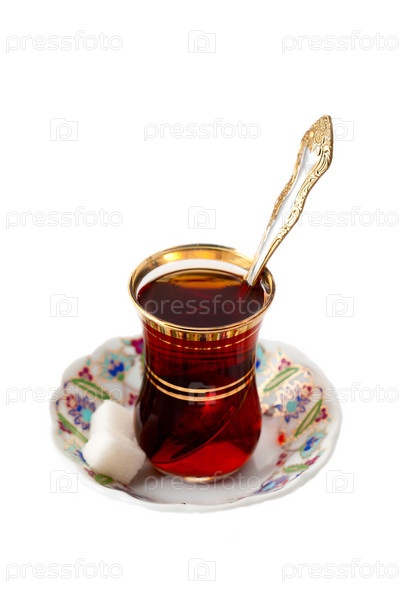 Традиционный турецкий чай с сахаром и ложкой