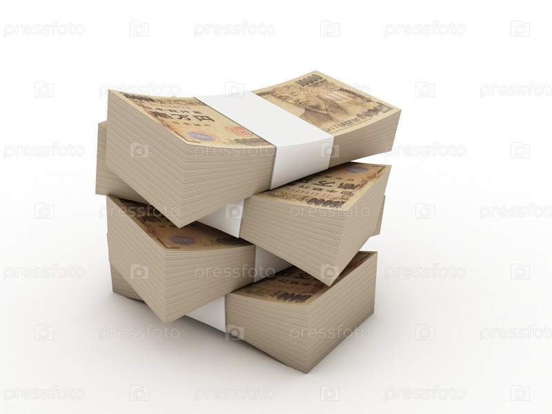 Стопка изкупюр достоинством 10000 иен, изолировано на белом фоне