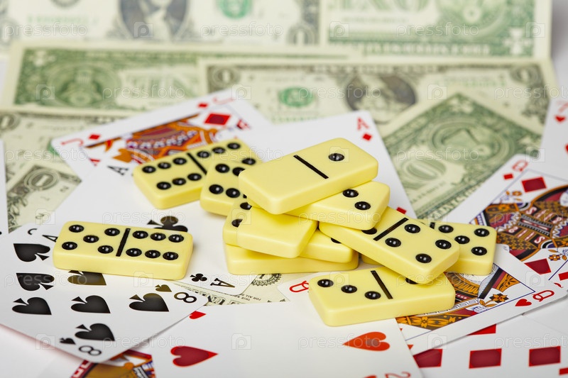 Домино на фоне карт и денег