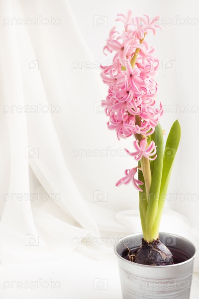 Розовый гиацинт в металлическом контейнере