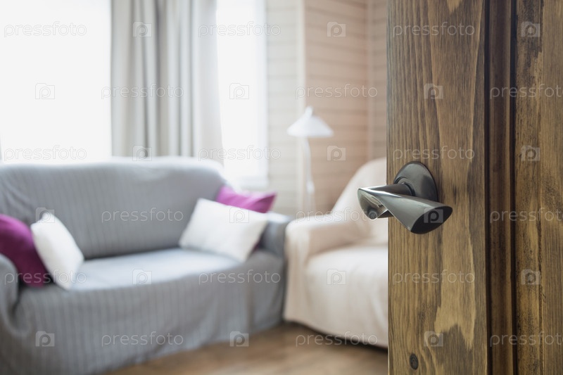 Открытая деревянная дверь в современной гостиничный номер