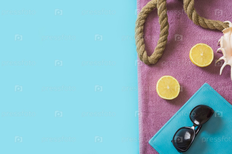 Пляжное полотенце, солнцезащитные очки и летние аксессуары