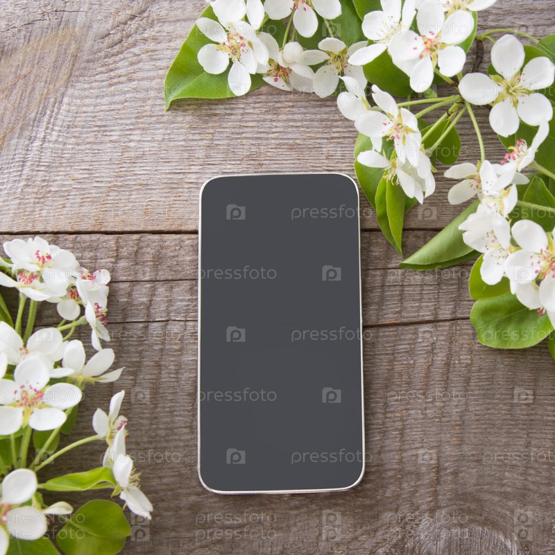 Цветущие ветви со смартфоном