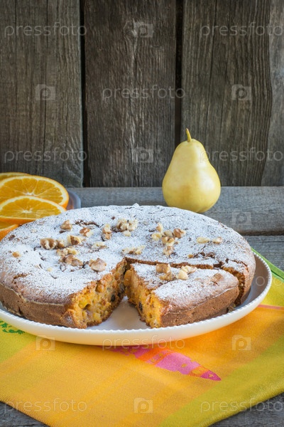 Вкусный морковный пирог с орехами, грушей и апельсинами