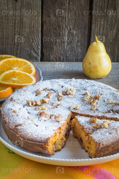 Вкусный морковный пирог с орехами, грушей и апельсинами