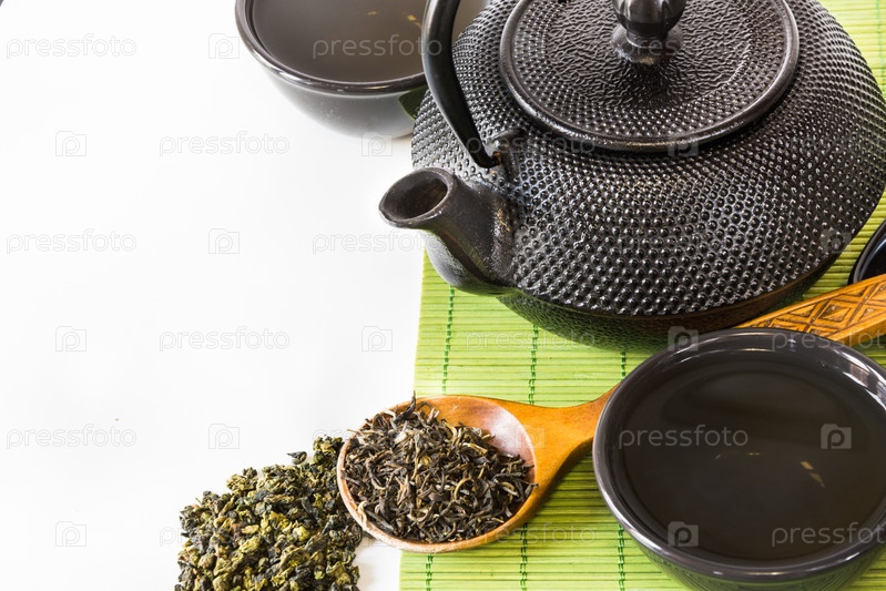 Азиатский зеленый чай на бамбуковой циновке