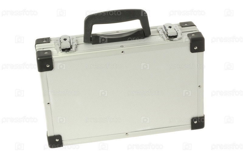 Металлический портфель на белом фоне