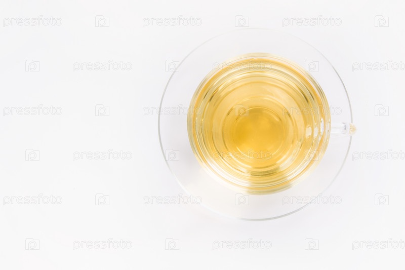 Стеклянная чашка с зеленым чаем на белом фоне