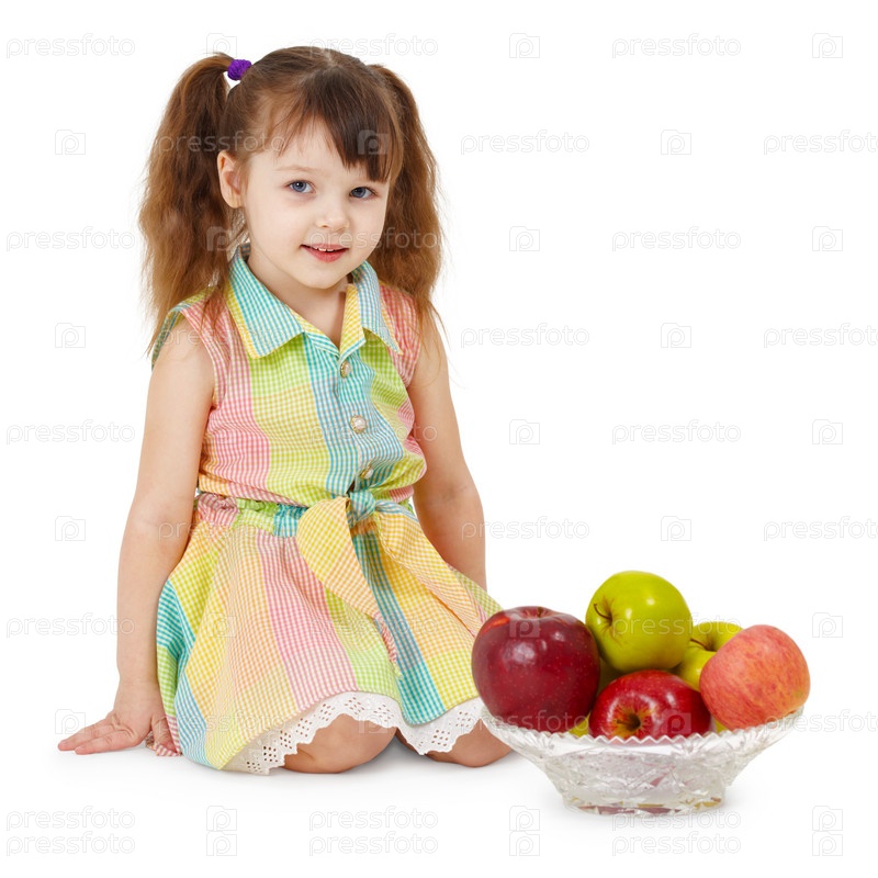 Маленькая девочка с тарелкой яблок