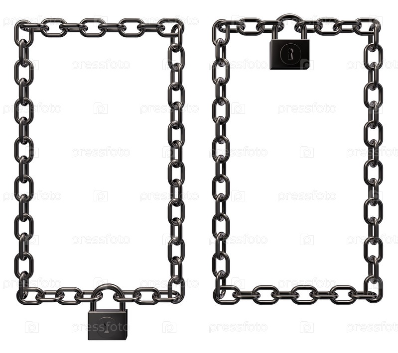 Рамка из металлической цепи с замком на белом фоне