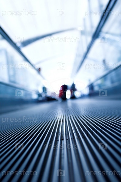 Движущаяся эскалаторная лестница в офисном зале перспективный вид