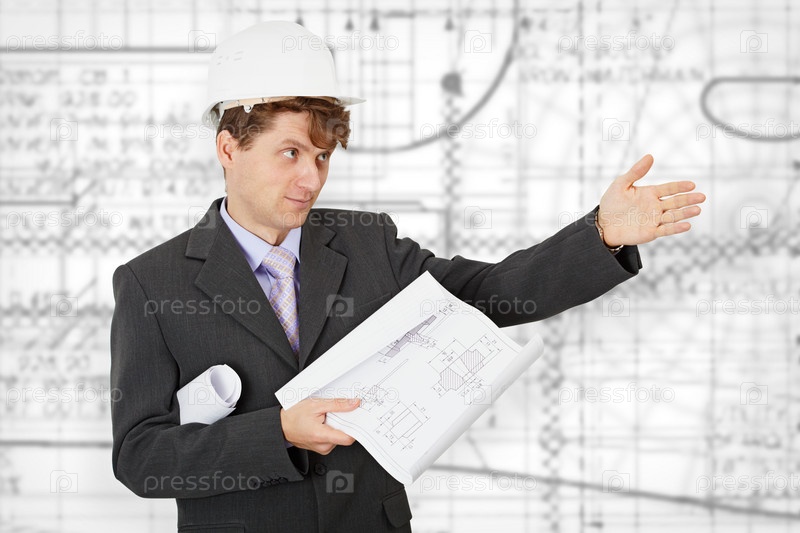 Инженер с чертежами в руках