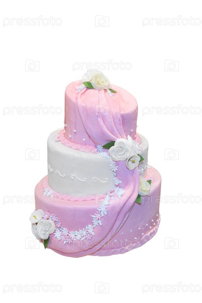 Элегантный свадебный торт, изолированный на белом фоне