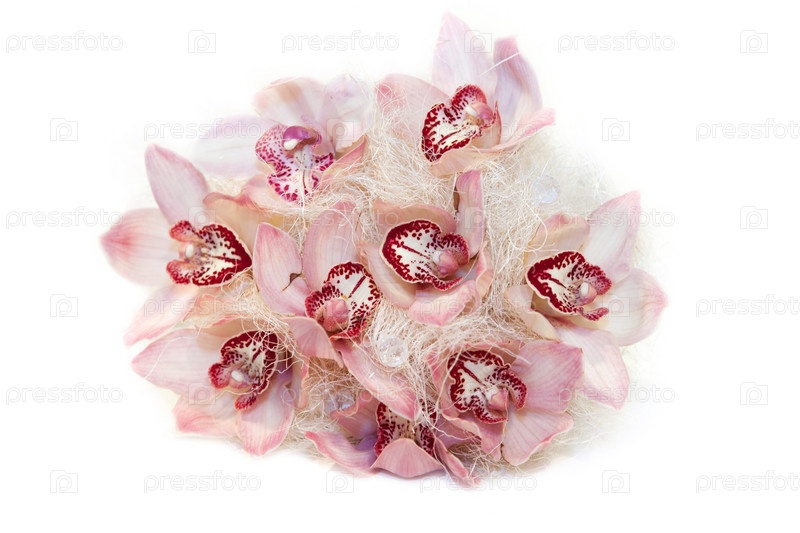 Красивый букет орхидей на белом фоне