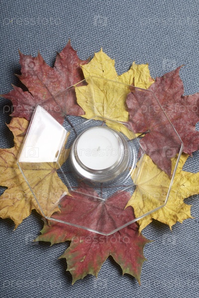 Свеча на опавших осенних листьях