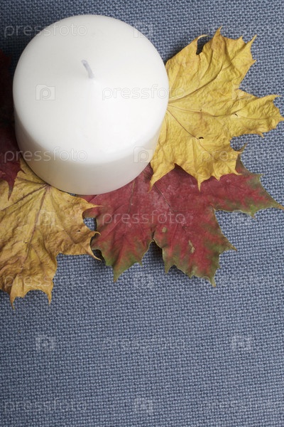 Свеча на осенних листьях