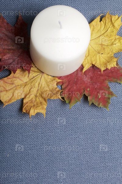 Свеча на осенних листьях