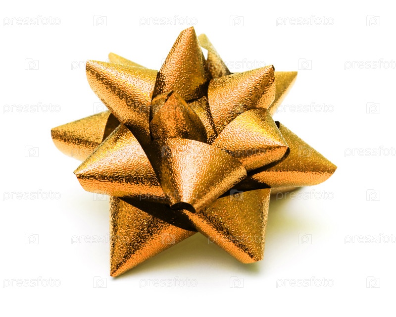 Золотой упаковочный бант, изолированный на белом