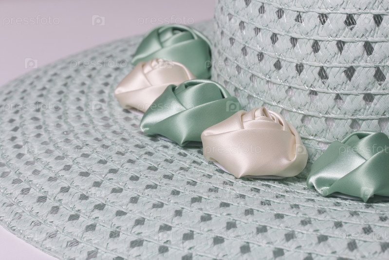 Шляпа украшена самодельными цветами из ткани