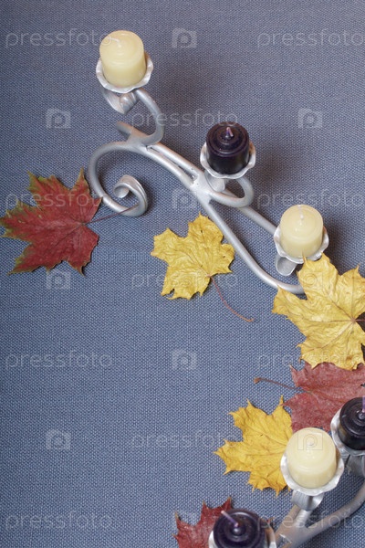 Свечи и осенние листья