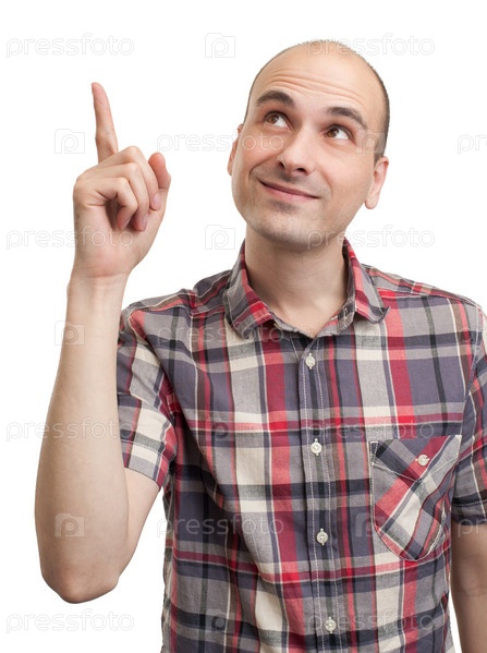 Красивый молодой мужчина показывает вверх