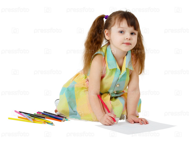 Ребенок рисует цветными карандашами на полу