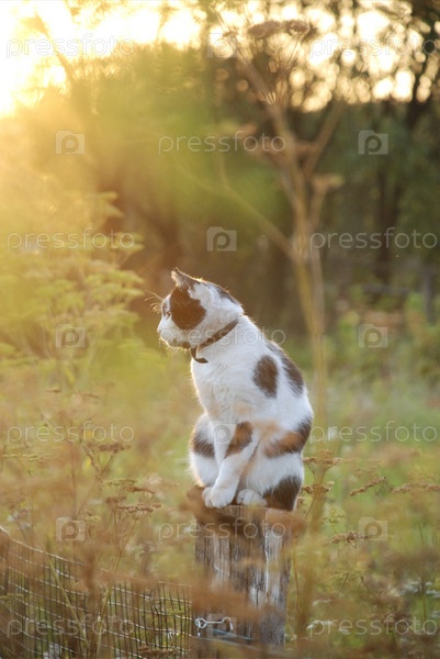 Черно-белая кошка, сидящая на заборе