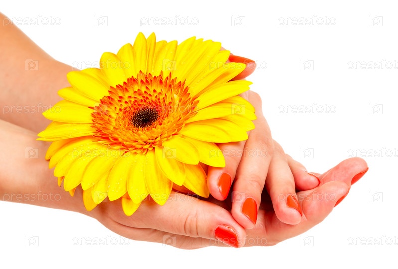 Маникюр и желтая гербера