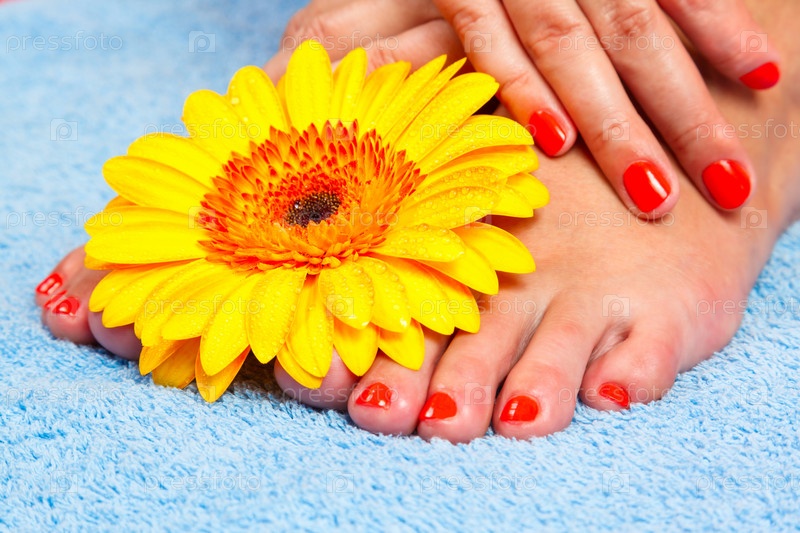 Маникюр, педикюр и желтая гербера