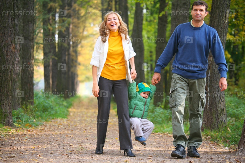 Семья с ребенком на прогулке